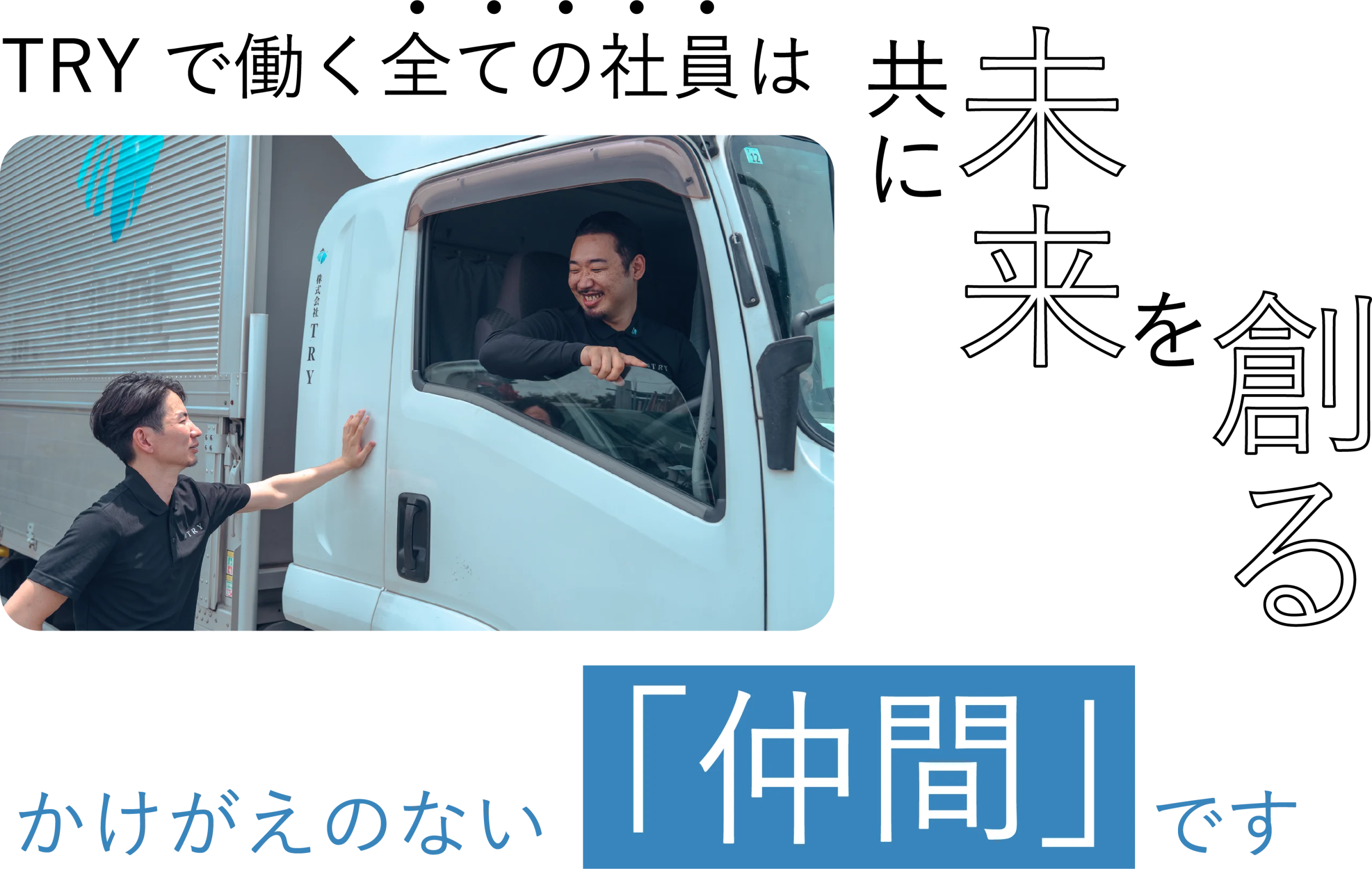 TRYの社員は、若い世代を中心に活気あふれる仲間たちです。困難な状況にも挑戦し、自分の力で乗り越えていく過程にこそ、働く喜びがあります。努力が形となって結果につながる達成感、仲間と共に成長していく充実感を日々実感しながら、それぞれがやりがいを持って働いています。